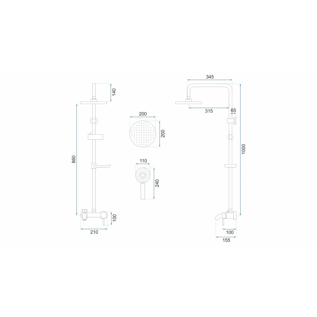 - Duș de mână: 240 x 110 mm