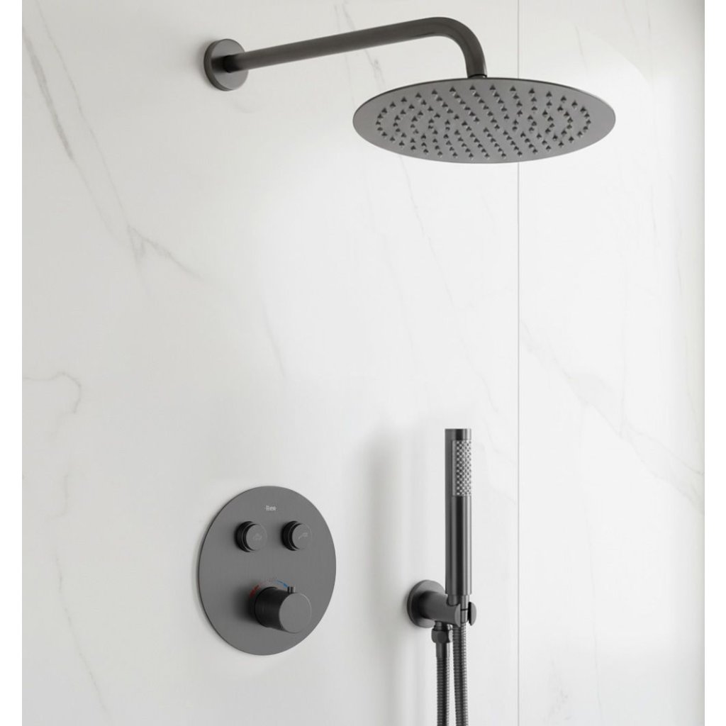 Rea Lungo, set de duș termostatic încastrat cu cap de ploaie și duș manual, grafit mat, REA-P6385