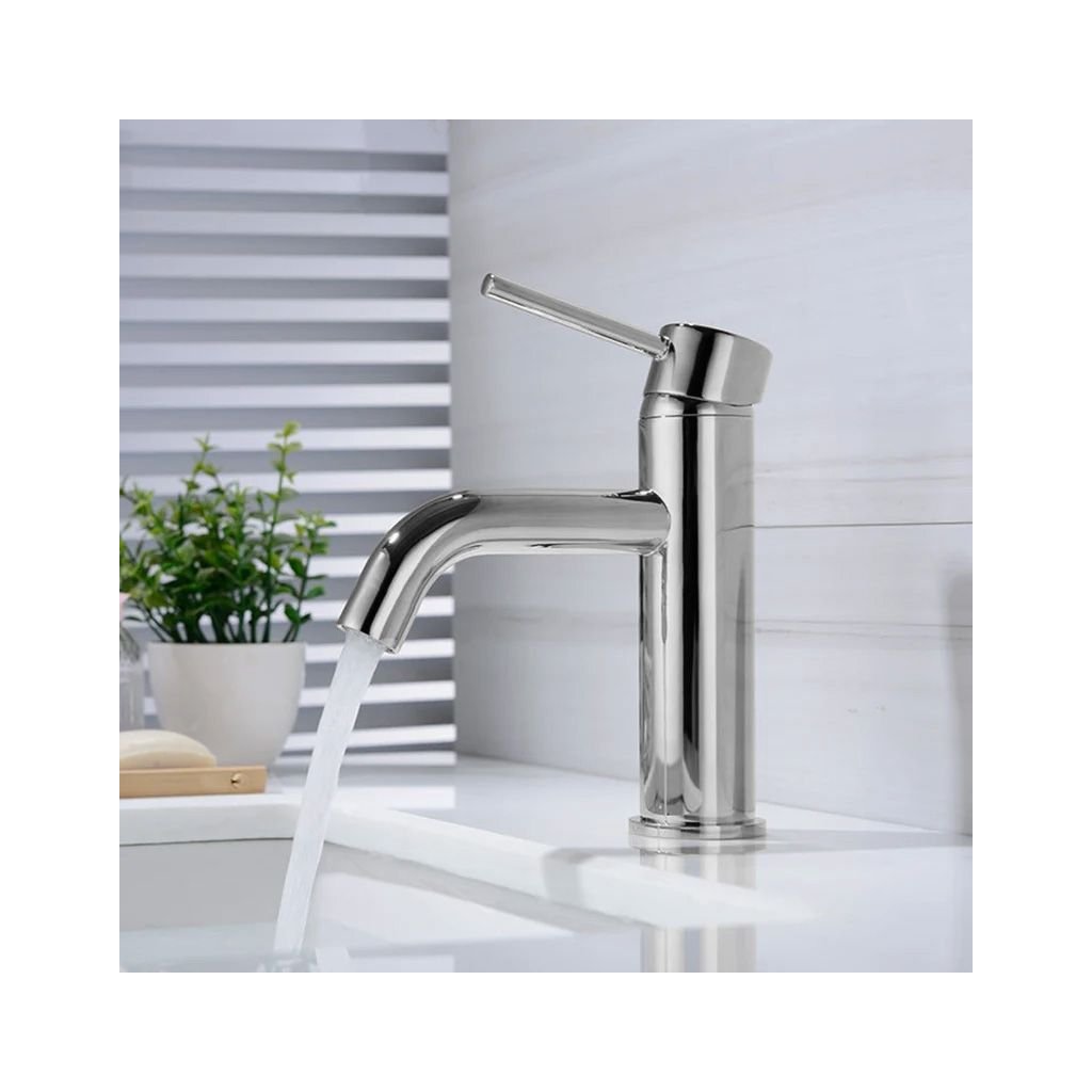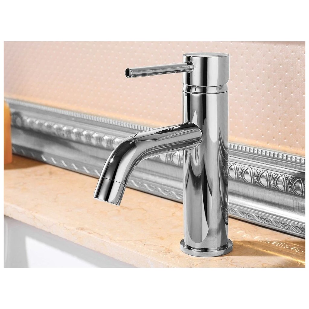 Baterie de chiuveta extrem de durabila si functionala realizata din alama de cea mai inalta calitate. Acest material asigură fiabilitatea completă și garantează funcționarea fără probleme a produsului pentru mulți ani. Capul ceramic vă permite să efectuați până la 500.000 de cicluri de deschidere și închidere a fluxului de apă. Acoperirea corpului bateriei cu straturi cromate conferă bateriei un aspect unic și o protejează de coroziune și de o suprafață plictisitoare. Forma frumoasă a robinetului se potrivește perfect în orice baie.