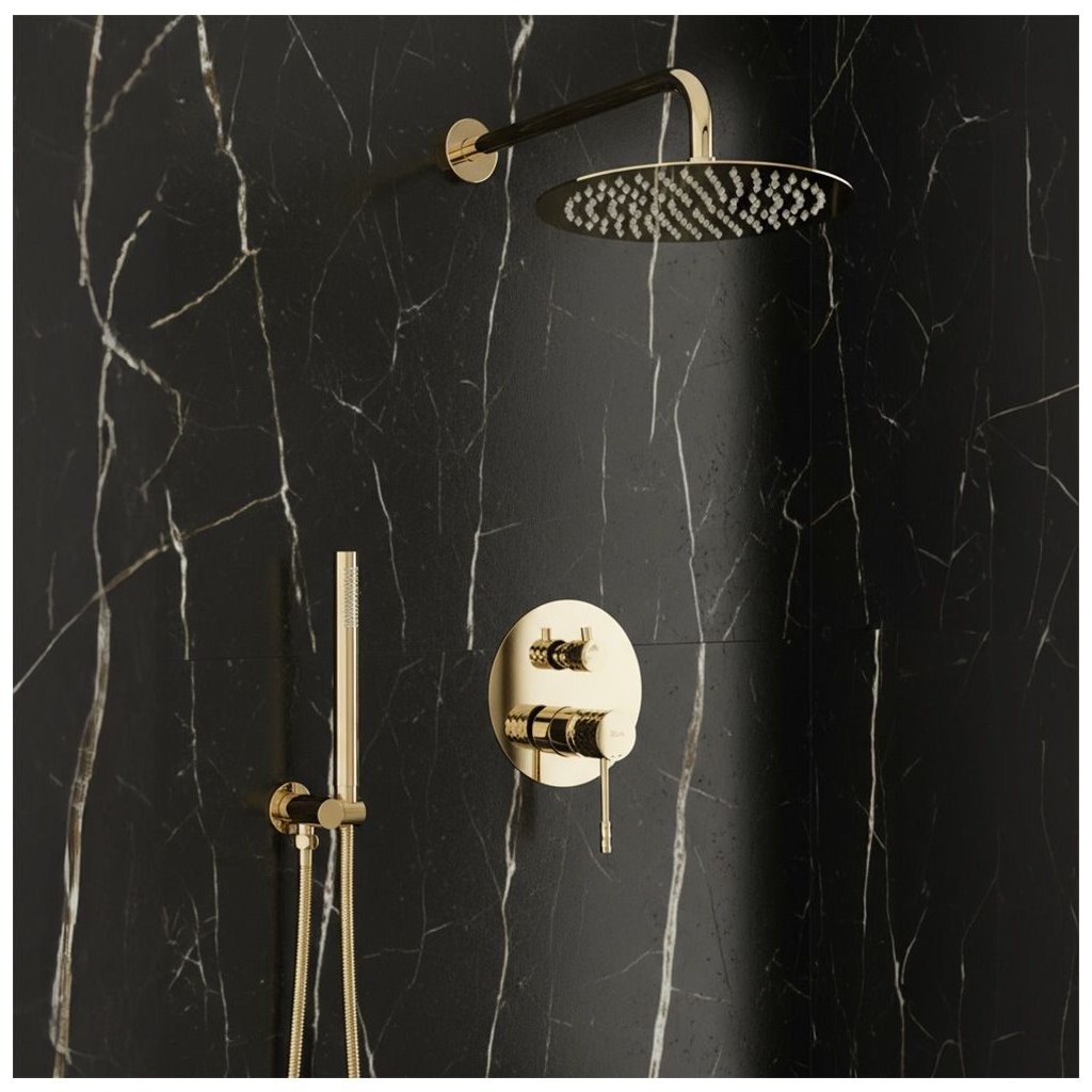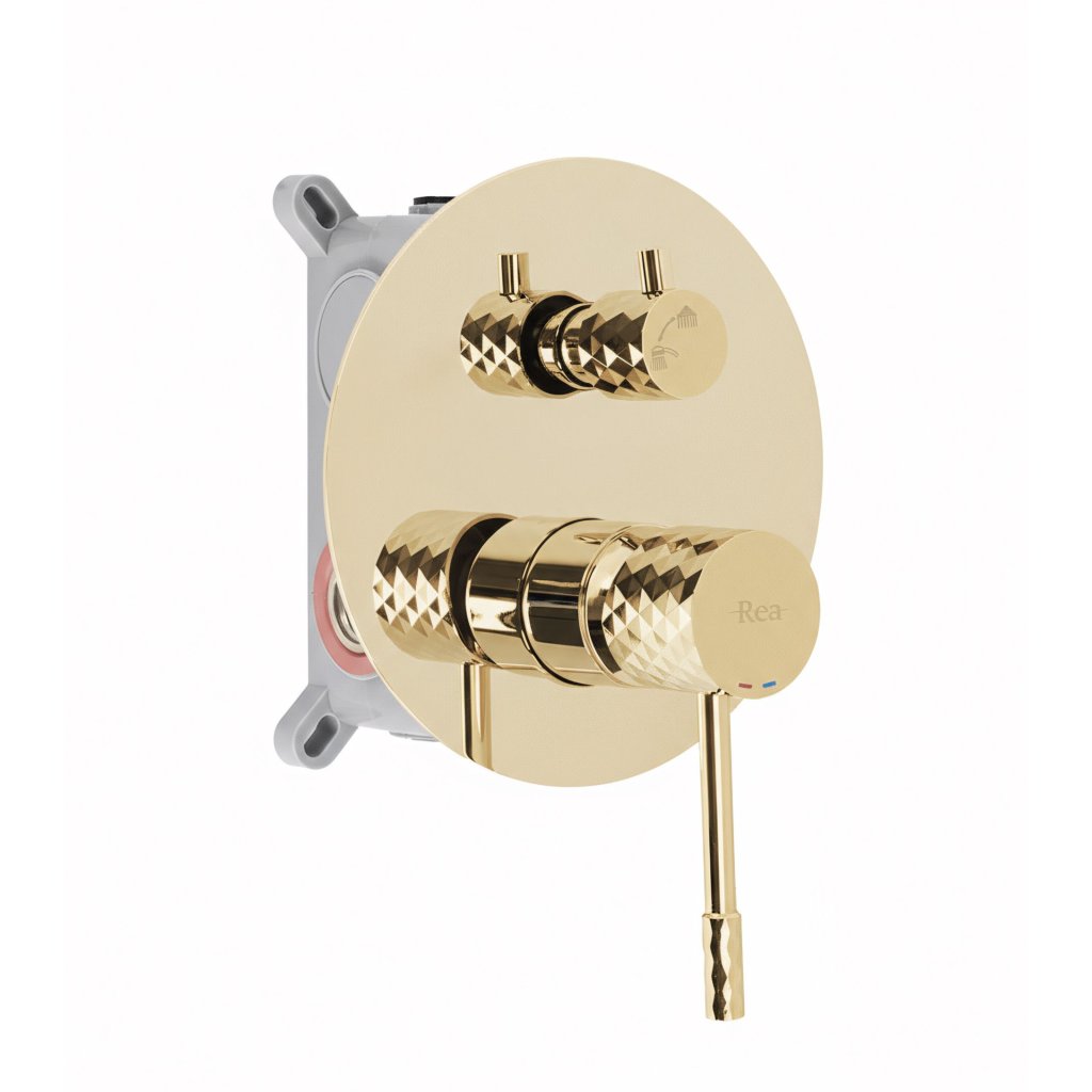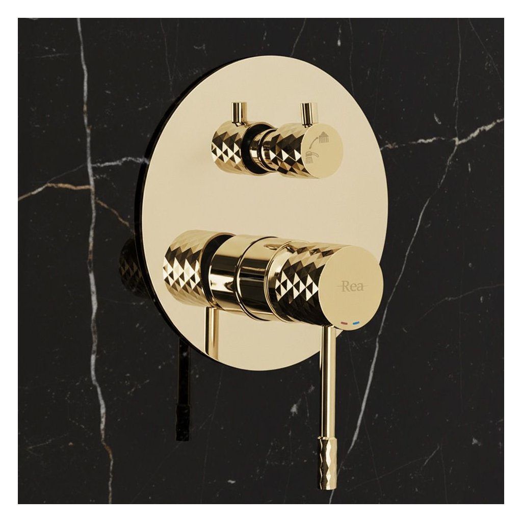 Rea Lungo Diamond, set de duș încastrat cu cap de ploaie și duș manual, auriu strălucitor, REA-P6964