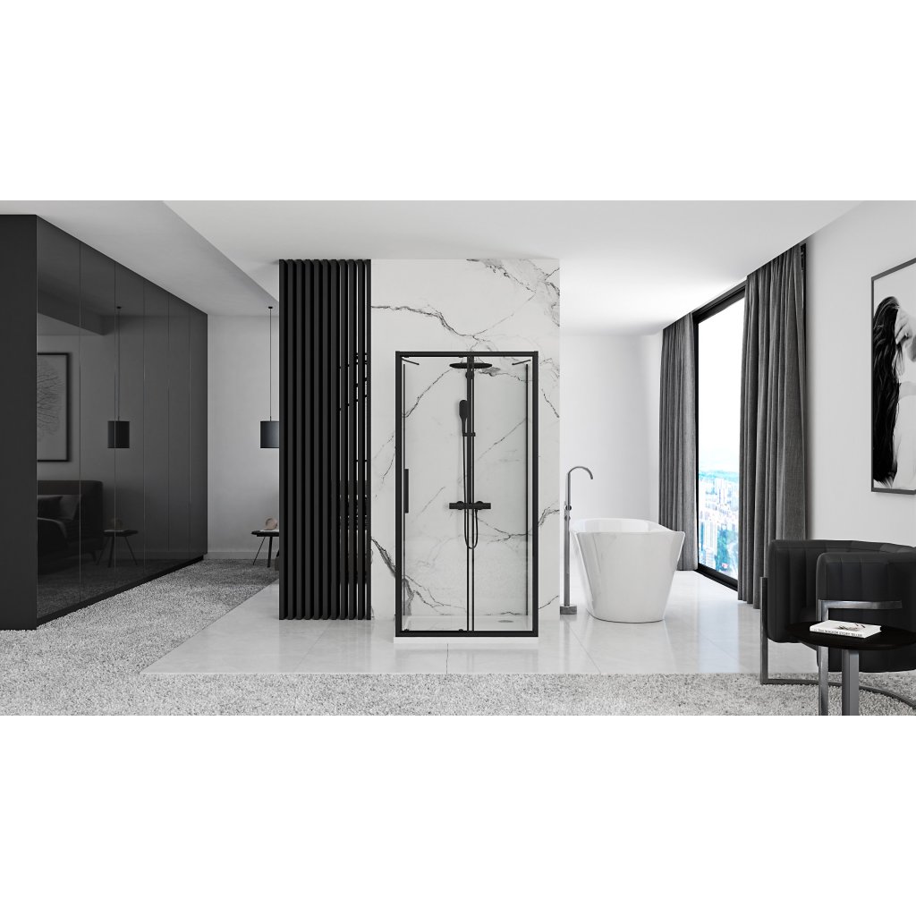 Rea Rapid Slide Wall, cabină de duș cu 3 pereți cu ușă glisantă 110 (uşă) x 90 (perete) x 195 cm, sticlă transparentă de 6 mm, profil negru, KPL-09878