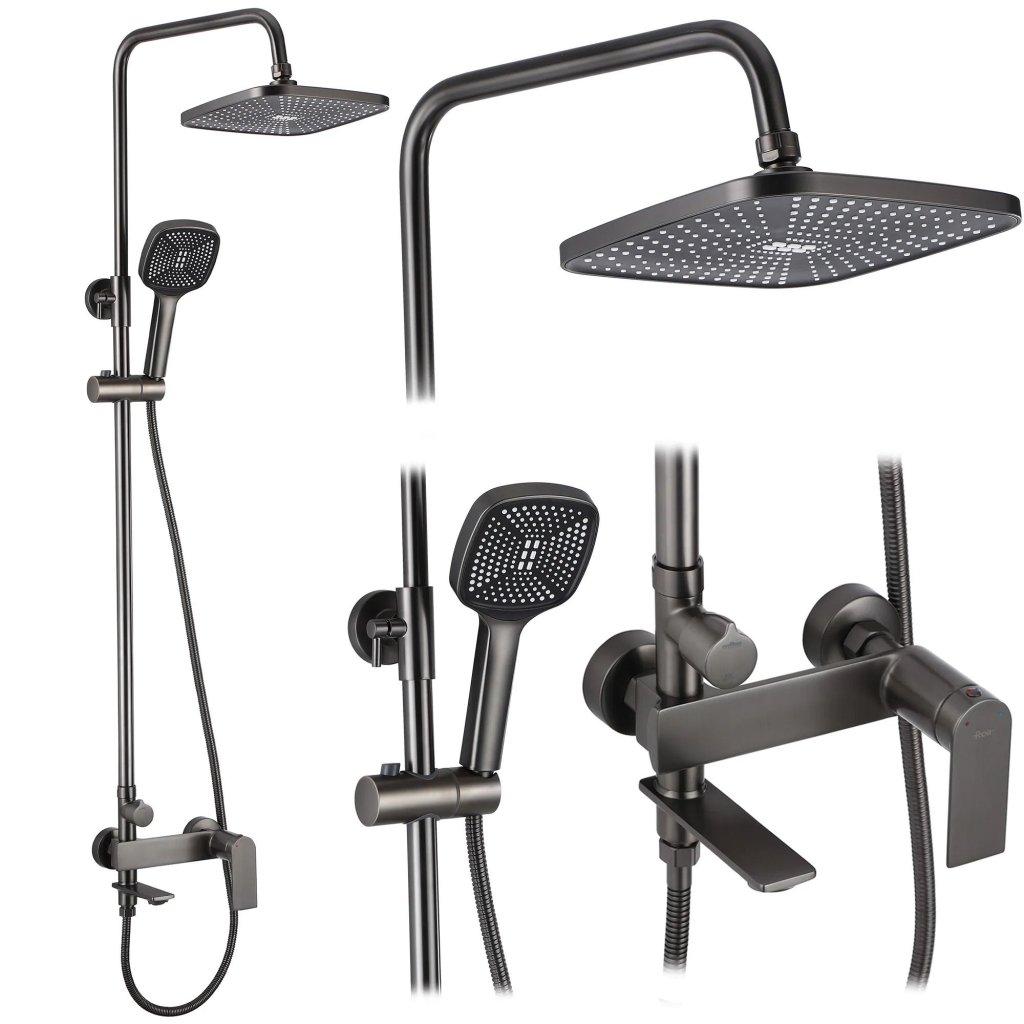 Rea Storm, set cadă/duș cu duș cu efect de ploaie și duș manual, grafit, REA-P9534