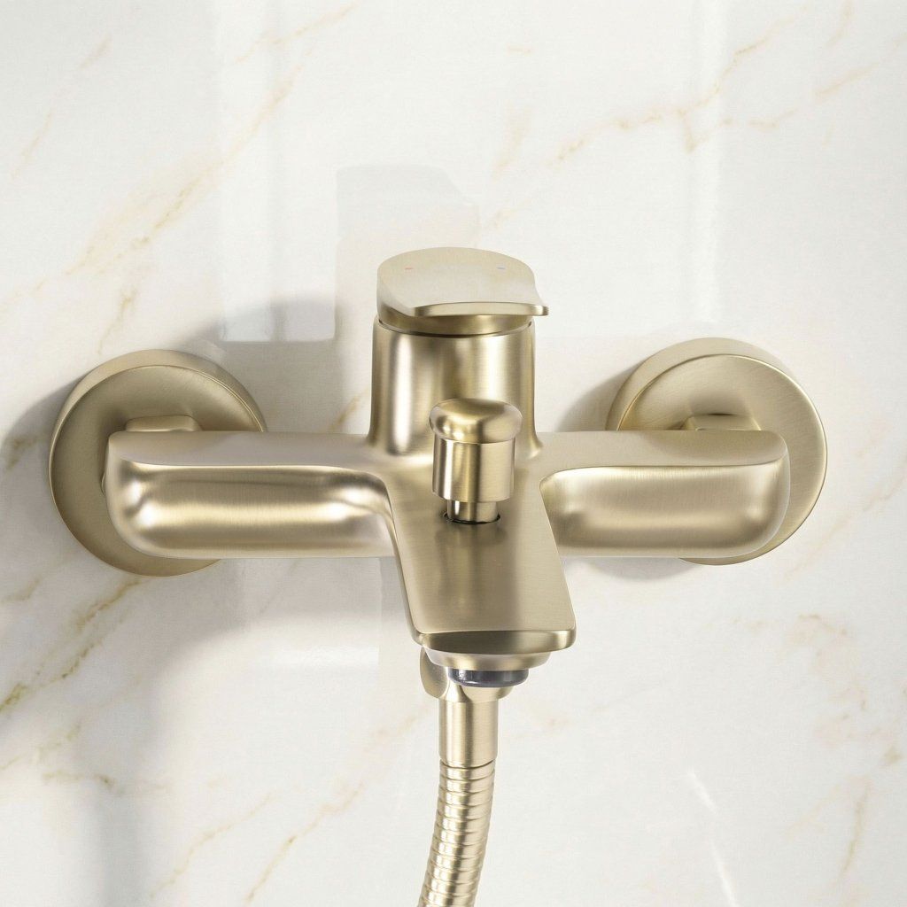 - Cap de duș cu suport de perete cu finisaj auriu — inclus