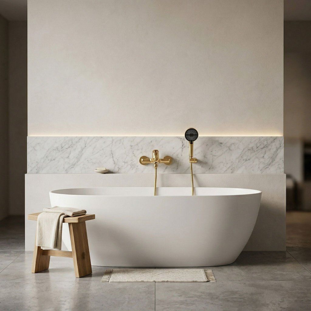 Montare pe perete — o zonă organizată pentru cadă fără compromisuri