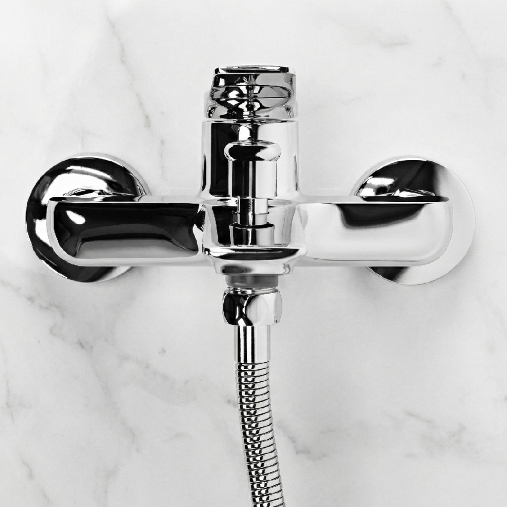 Design minimalist, montat pe perete, crom luciosSet cu cap de duș