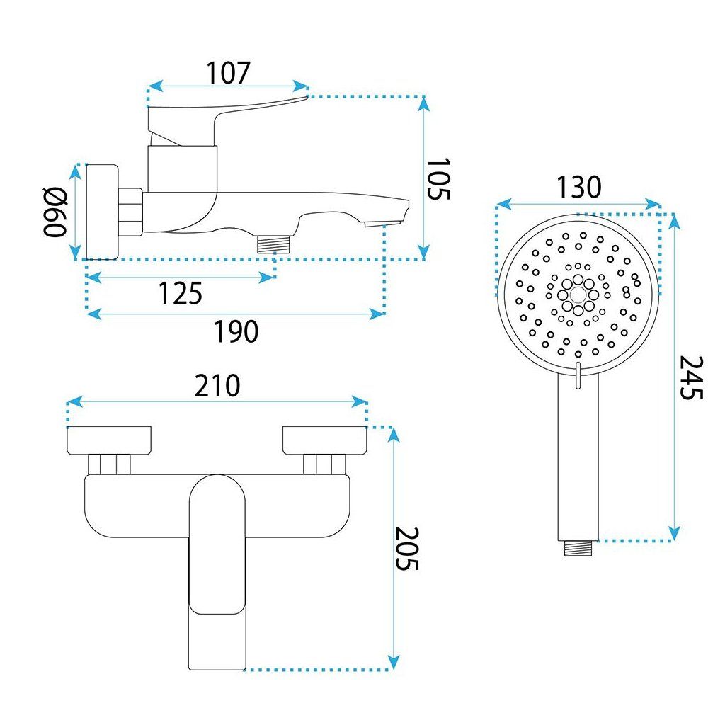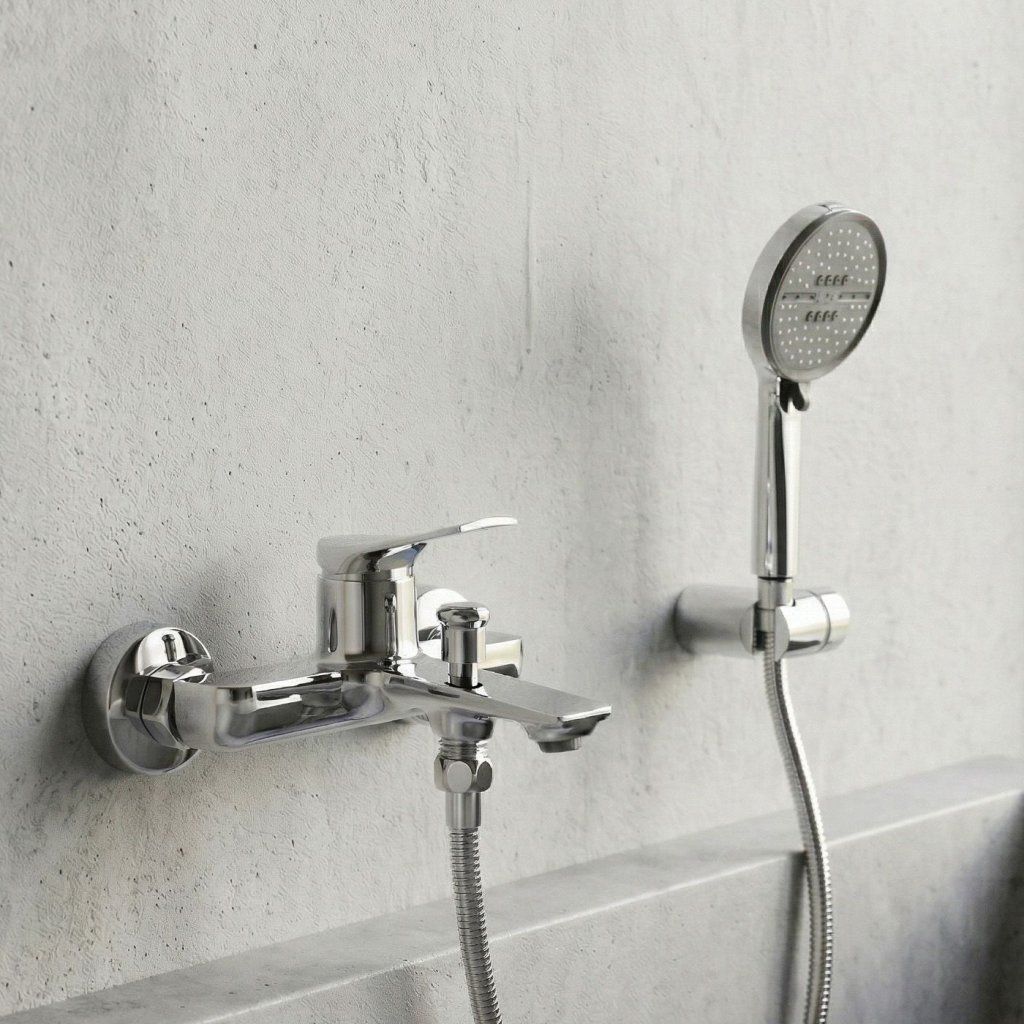 Bateria Vision este dotată cu un cap de duș și un suport de perete. Combinația dintre bateria de cadă și dușul manual într-un singur set asigură funcționalitatea maximă a zonei de baie, fără a fi nevoie să căutați accesorii compatibile separat.