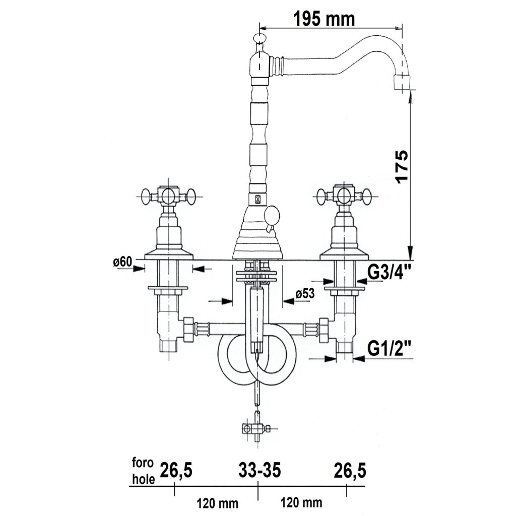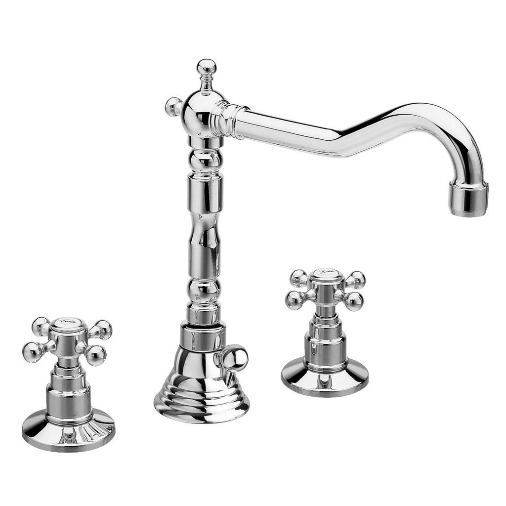 Reitano Rubinetteria, baterie lavoar cu trei elemente ANTEA, cu gura retro, cu priza, crom, 3221