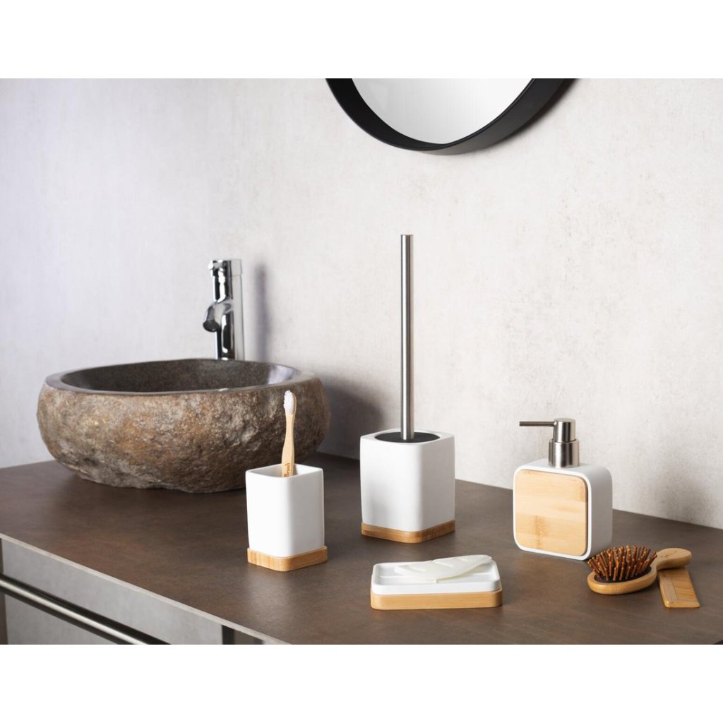 Accesoriile moderne pentru baie din seria AMARA reprezintă o combinație reușită de polirășină și bambus. Dacă ți-au atras atenția cu designul lor, cea mai mare problemă pentru tine va fi să te decizi dacă alegi o variantă alb sau negru.
