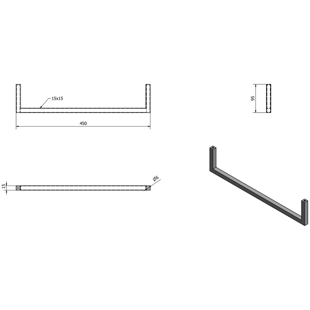 Sapho, AVICE Suport pentru prosoape 450x95mm, mat negru, VC467