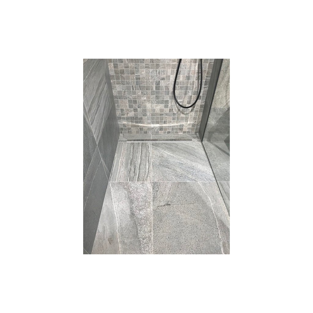 Bara de cădere ajută la acoperirea tranziției create în timpul construcției colțului de duș între partea de cădere și cea care nu cade a podelei.