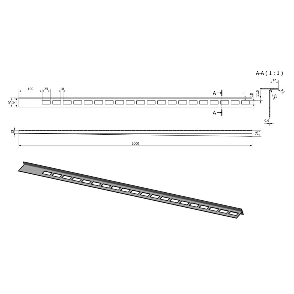 - Lungime bară: 1000 mm
