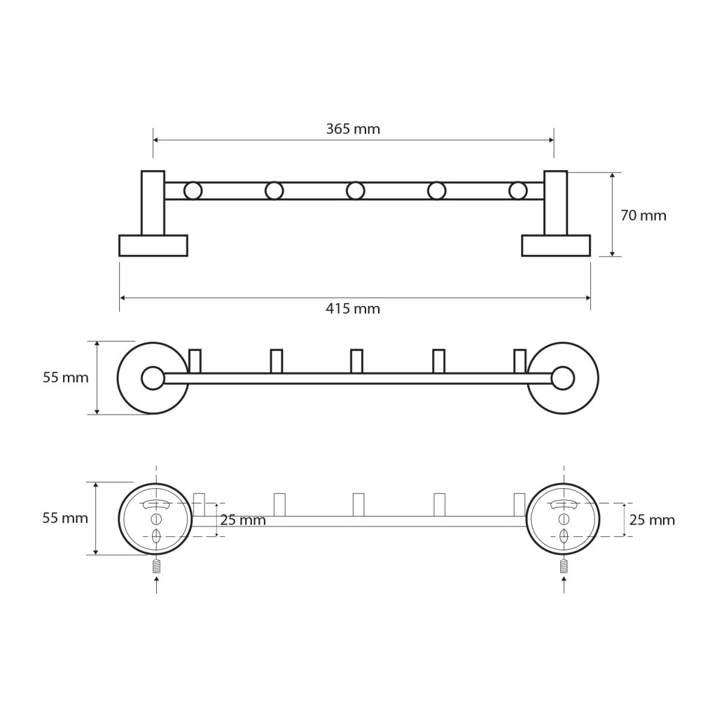 Sapho, bară X-ROUND E cu 5 umerase 395 mm, crom, XR214