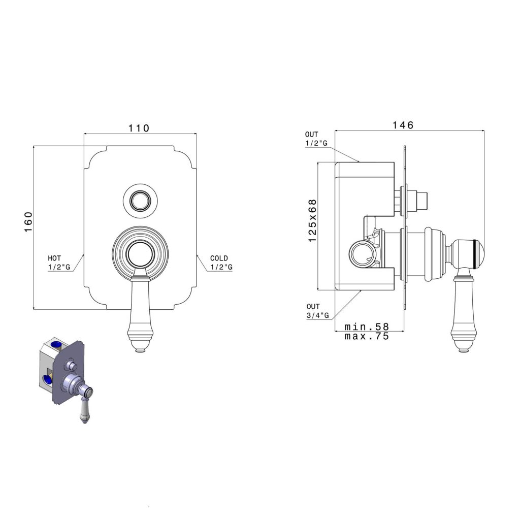 Sapho, baterie de duș VIENNA ascunsă, 2 ieșiri, crom, VO042