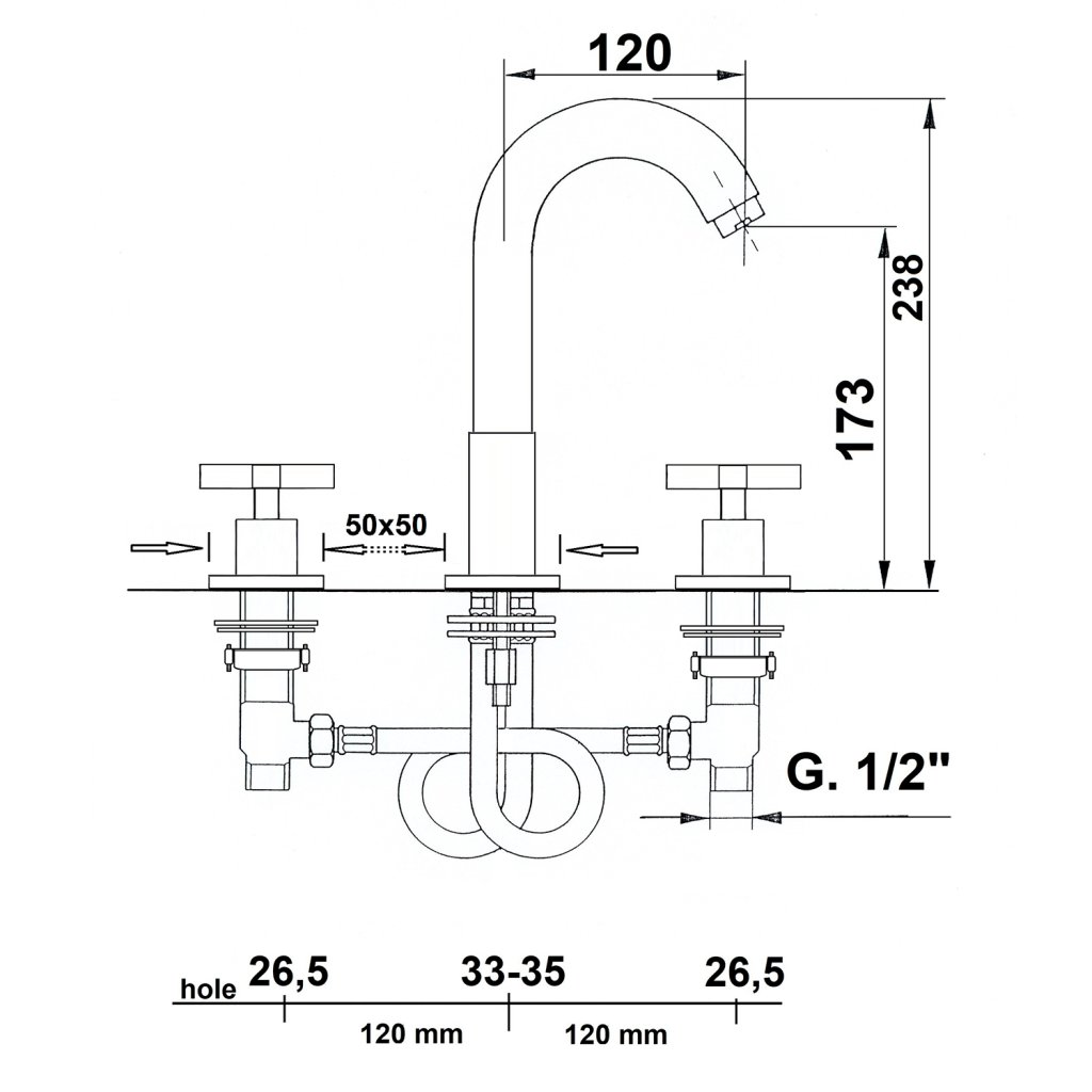 Sapho, baterie lavoar cu trei elemente TRAX, fără priză, crom, 602/S