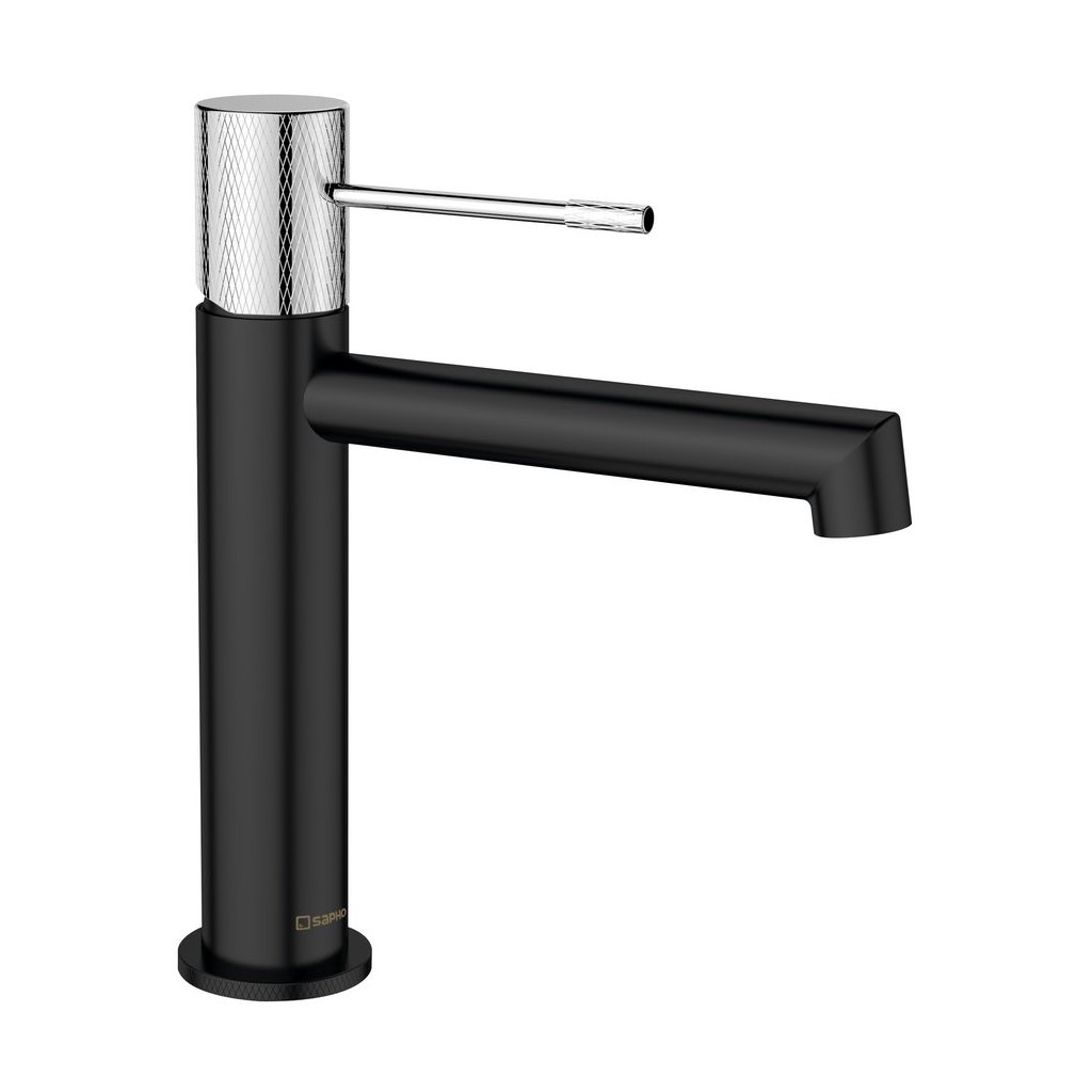 Sapho, baterie lavoar SOLARIS pe piedestal, negru mat/crom, WD002BC