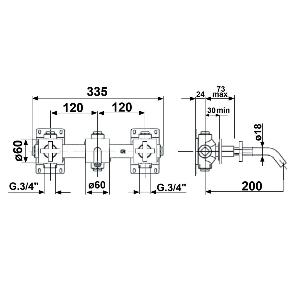 Sapho, baterie pentru chiuvetă ascunsă cu trei elemente TRAX, crom, 652
