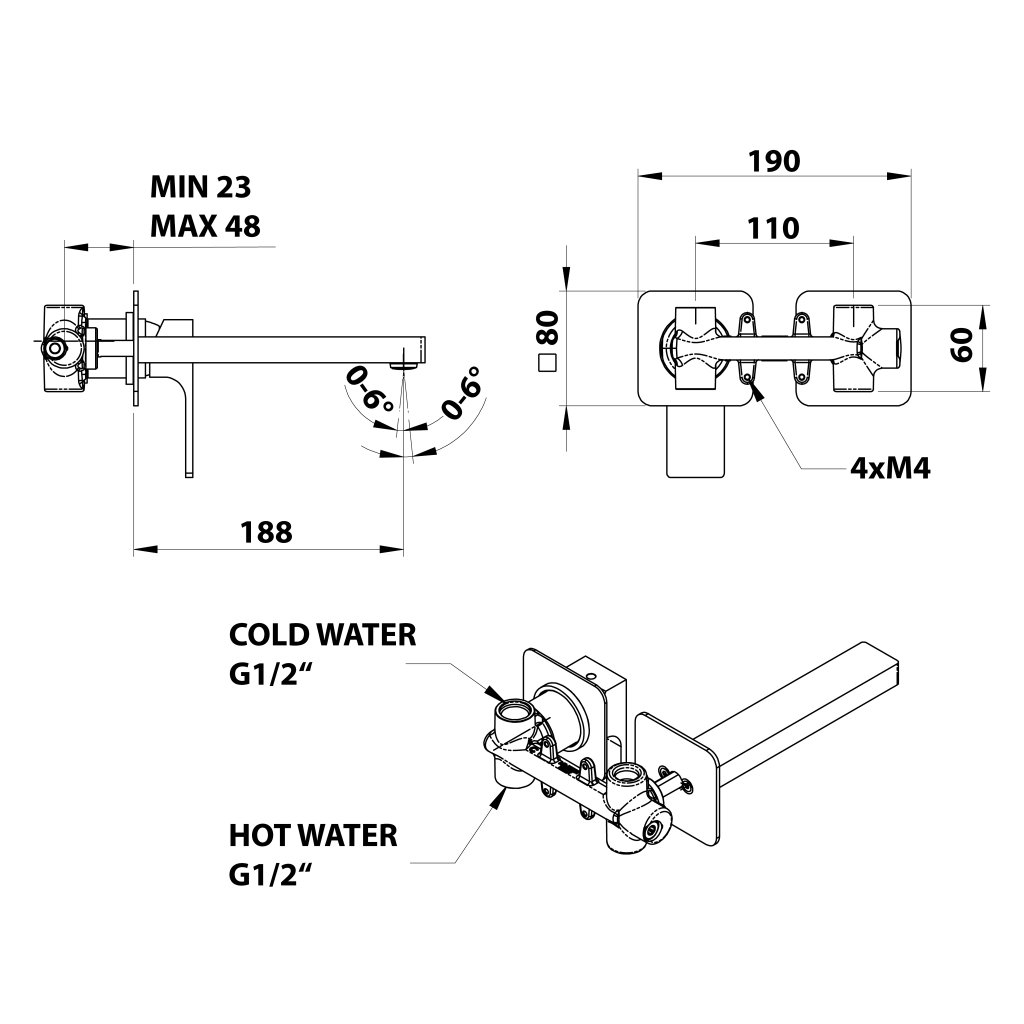 Sapho, baterie pentru chiuvetă ascunsă FORATA, 20 cm, negru mat, FT018/15