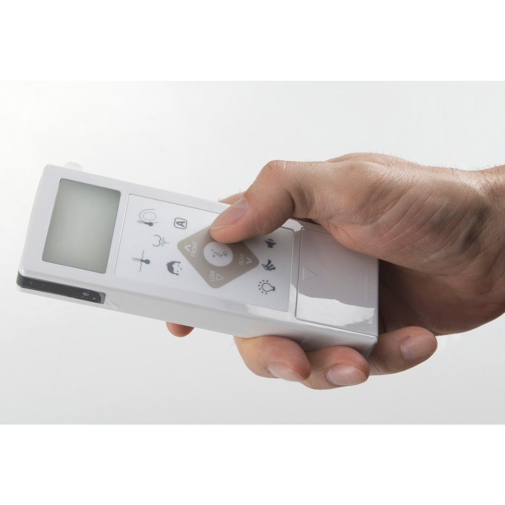 | Telecomanda reversibil pentru funcții de bază și avansate setare memorie pentru 2 persoane | Control pe partea stângă/dreapta a dispozitivului | Senzorul tactil din scaun activează funcțiile | Fabricat din plastic antibacterian |