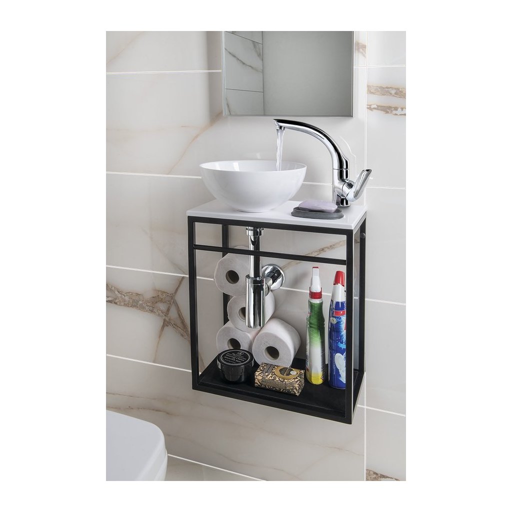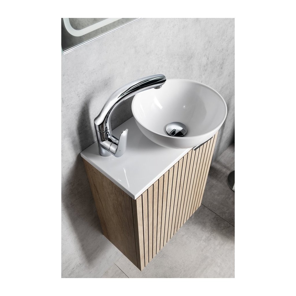 Sapho, blat MINOR sub chiuveta 40x22cm, baterie chiuveta dreapta, marmura turnata, alb, MR405