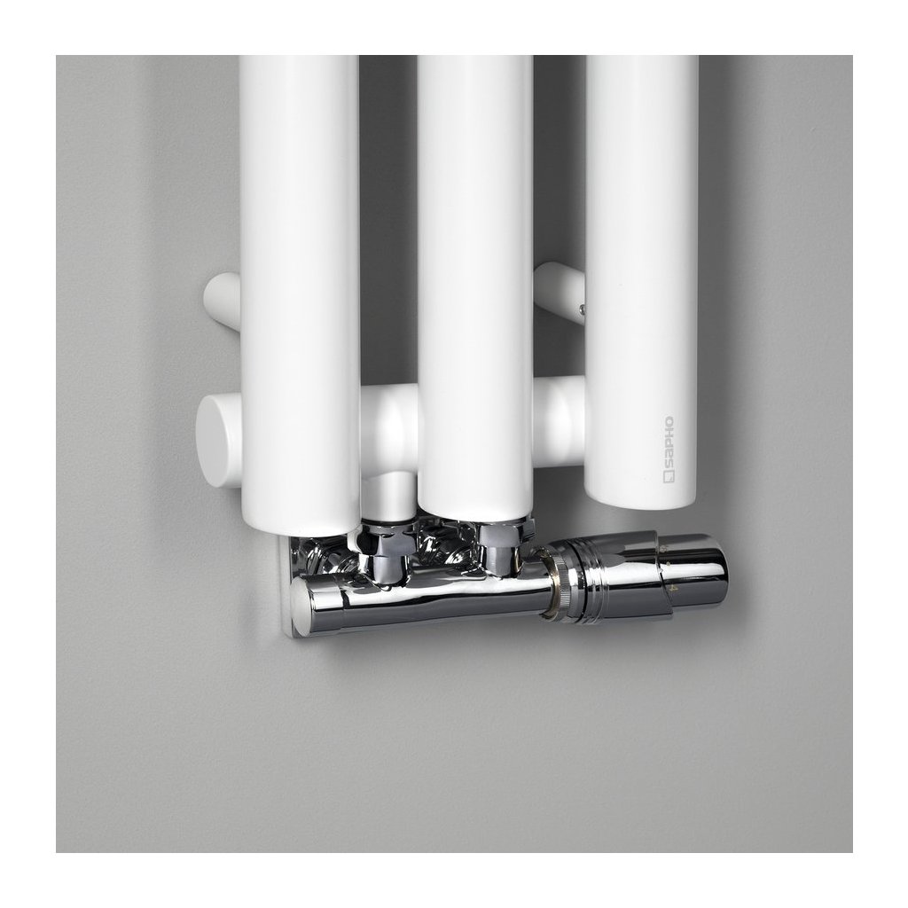 Supapele de conectare pe care le oferim sunt furnizate inclusiv fitinguri de compresie pentru cele mai comune conducte (Ø15 mm Cu și Ø16 mm Alupex), deci nu este nevoie să achiziționați nimic suplimentar pentru conectare. Vă recomandăm să cumpărați rozete de acoperire pentru a acoperi țevile de alimentare și găurile din perete.