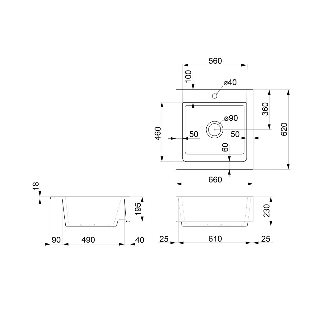 Sapho, chiuveta ceramica ARYA 66x62cm, alb, 50166