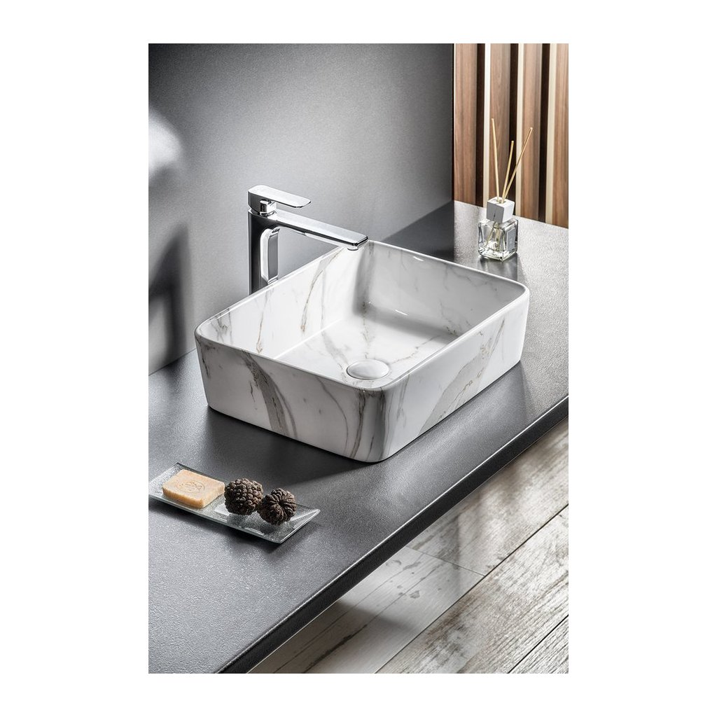 Seria de chiuvete ceramice DALMA impresioneaza prin efectul de piatra. Chiuvetele sunt smălțuite cu autocolante ars într-un design din piatră, care garantează stabilitatea și durabilitatea decorului. Puteți alege nu numai dintre trei decoruri în nuanțe de marmură, ci și dintre cinci forme. Chiuvetele sunt proiectate pentru a fi amplasate pe un blat, iar toate pot fi achiziționate cu o priză care se poate închide în culoarea chiuvetei.