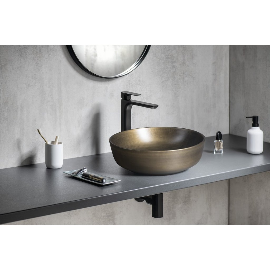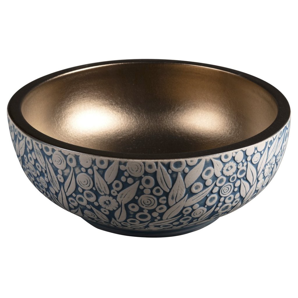 Sapho, chiuveta de blat ceramica PRIORI Ø 41 cm, cupru/albastru cu model, PI037