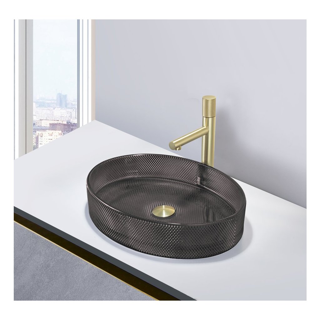 Sapho, chiuvetă de blat din sticlă gravată NOBAL 49x38 cm, neagră, TY326