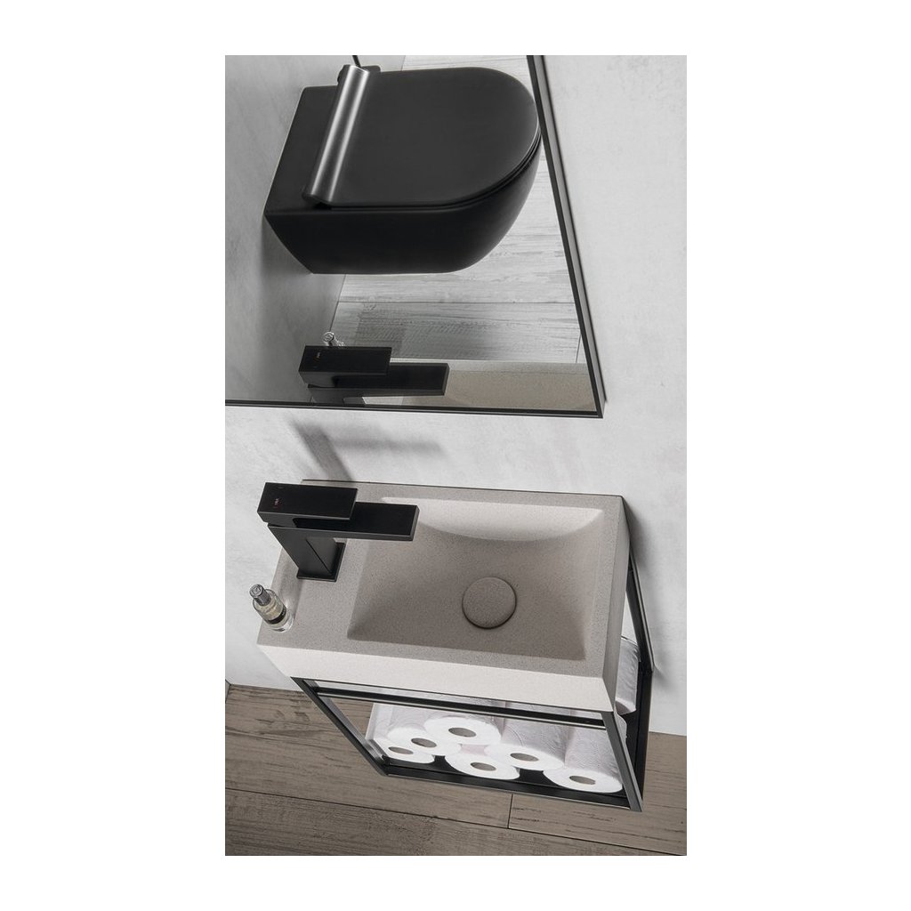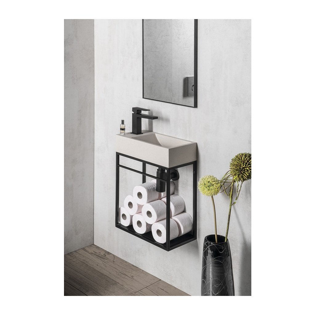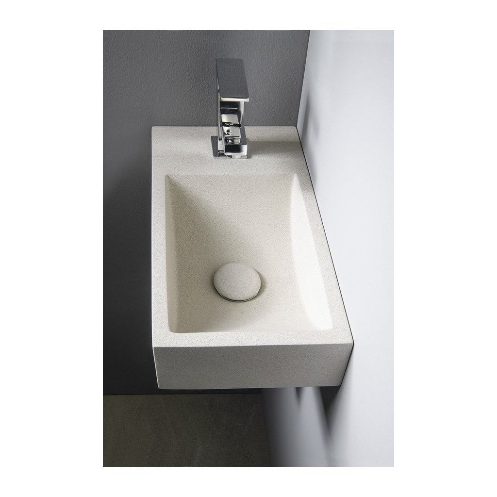 Sapho, chiuveta din beton CREST L cu priza, 40x22 cm, gresie alba, AR410