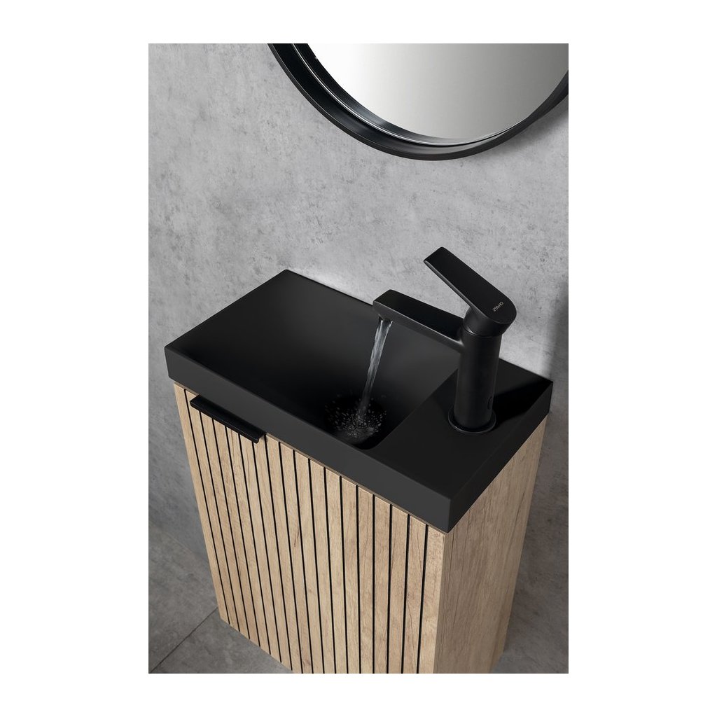 Sapho, chiuveta din marmura turnata AMAROK 40x22cm, negru mat, robinet pe dreapta, AR500B