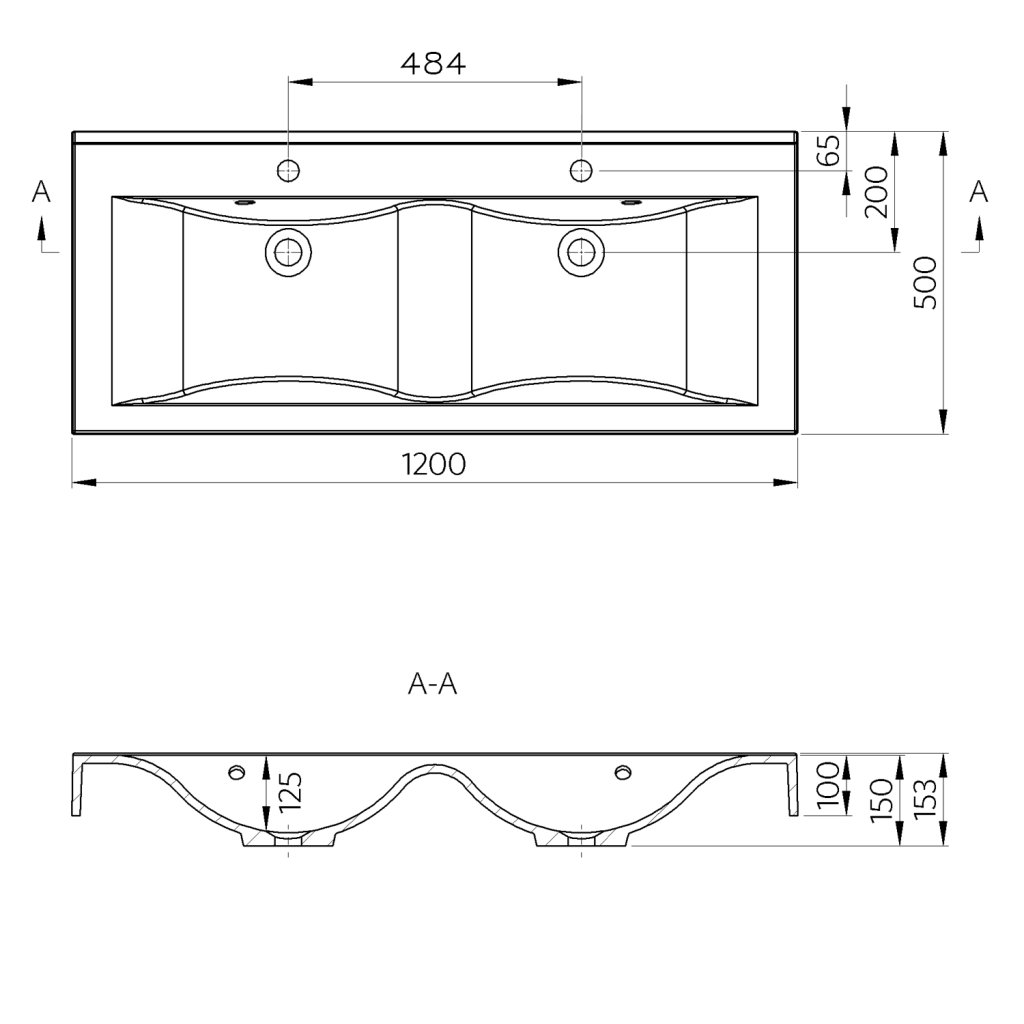 Sapho, chiuveta dubla FLAVIA 120x50cm, marmura turnata, alb, 68121