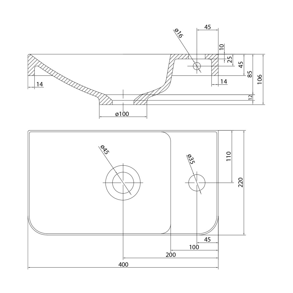 Sapho, chiuveta ZORBA 40x22cm, marmura turnata, robinet in dreapta, alb, ZB402