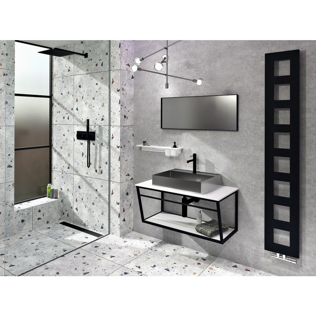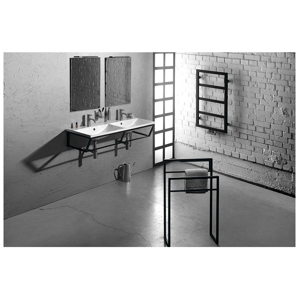 Consola Sapho SKA de format mare, cu o lungime de 160 cm, este o soluție ideală pentru băi spațioase, cu chiuvete duble sau blaturi largi pentru lavoare. Structura sa metalică minimalistă, de culoare neagră mat, aduce un aspect modern, linii curate și un spațiu iluminat optic.