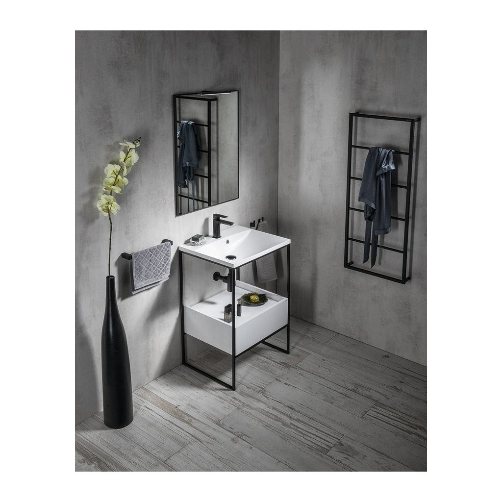 Suportul oferă stabilitate ridicată și capacitate portantă, asigurând o fixare sigură pe blat sau chiuvetă. Rama deschisă oferă un aspect aerisit și se potrivește perfect tendințelor actuale de design pentru baie.