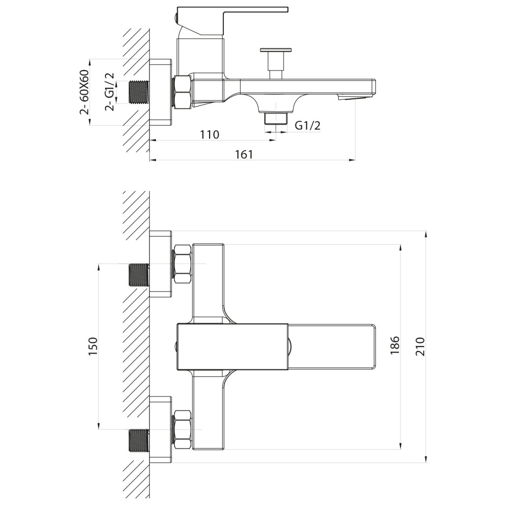 Sapho, CUBEMIX baterie de perete pentru baie, crom, CM010