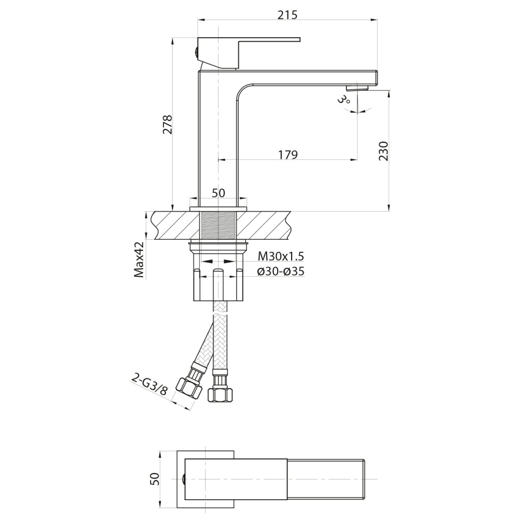 Sapho, CUBEMIX Baterie lavoar de sine stătătoare fără priză, înalt, crom, CM006