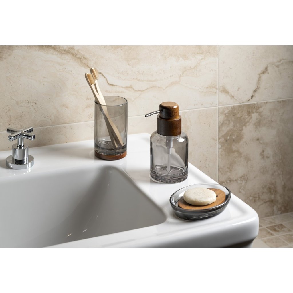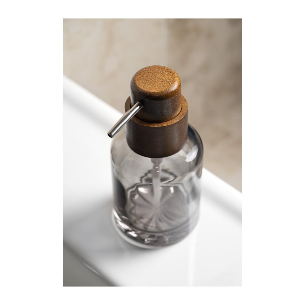 Sapho, dozator de săpun de sine stătător FIGO 300 ml, sticlă afumată/lemn, 08387