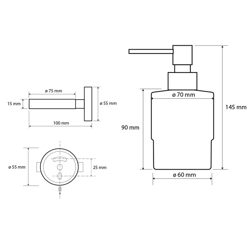 Sapho, dozator de săpun X-ROUND BLACK 200ml, sticlă de lapte, negru mat, XR103B