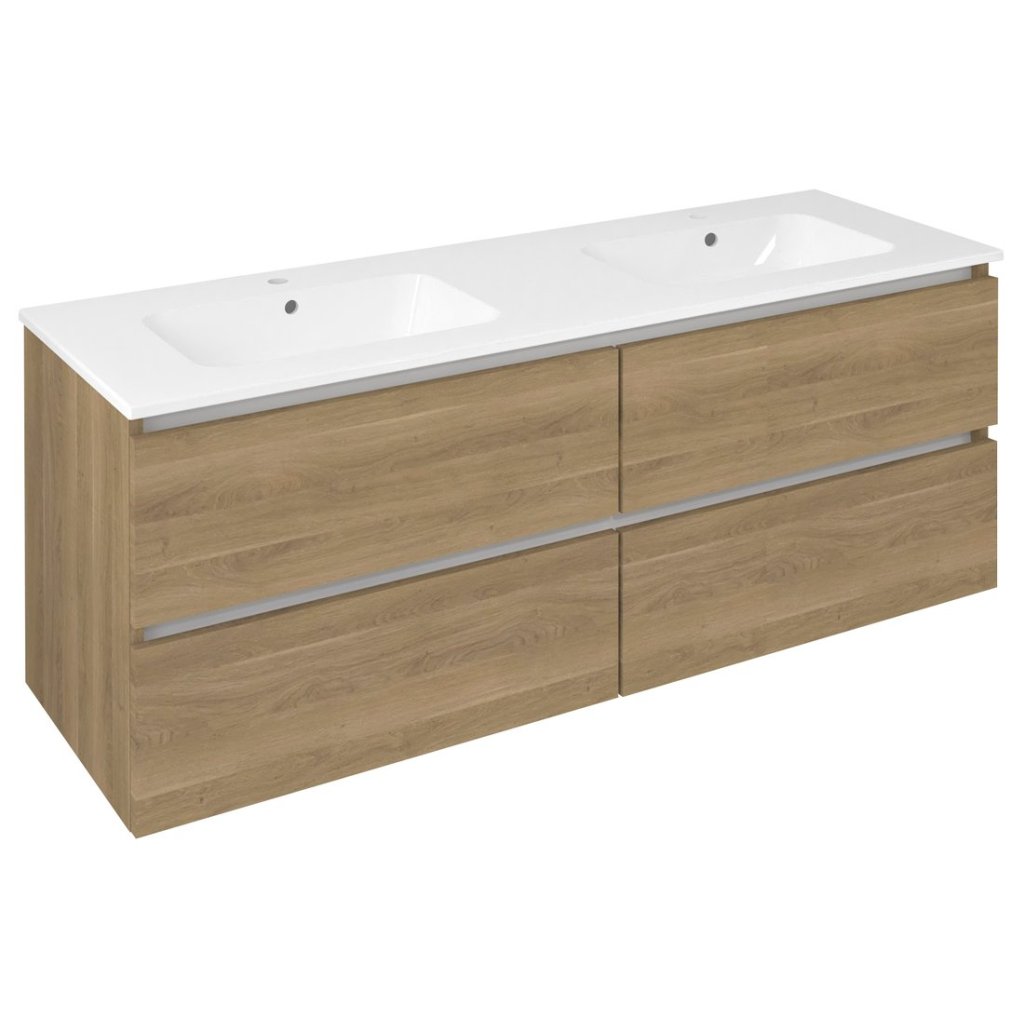 Sapho, Dulap chiuvetă dublă EZARA 140x55x46cm, stejar cuneo, EZ141-2525