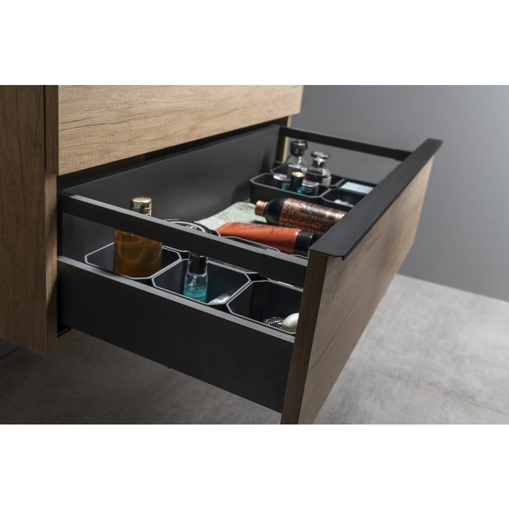 Seria SITIA oferă un aspect modern datorită unui mâner subțire de culoare alb sau negru mat, situat pe toată lungimea marginii sertarelor sau ușilor. Folosind chiuvete ceramice THALIE, creăm mobilier de baie atemporal. Sertarele sunt prevazute cu tragere cu cursa lenta si inchidere automata, usile au feronerie cu inchidere usoara. Sertarele superioare și inferioare pot fi completate cu un organizator sau cu boluri LINDO pentru depozitarea obiectelor de zi cu zi. Seria oferă, de asemenea, 2 dimensiuni de dulapuri suplimentare în același design.