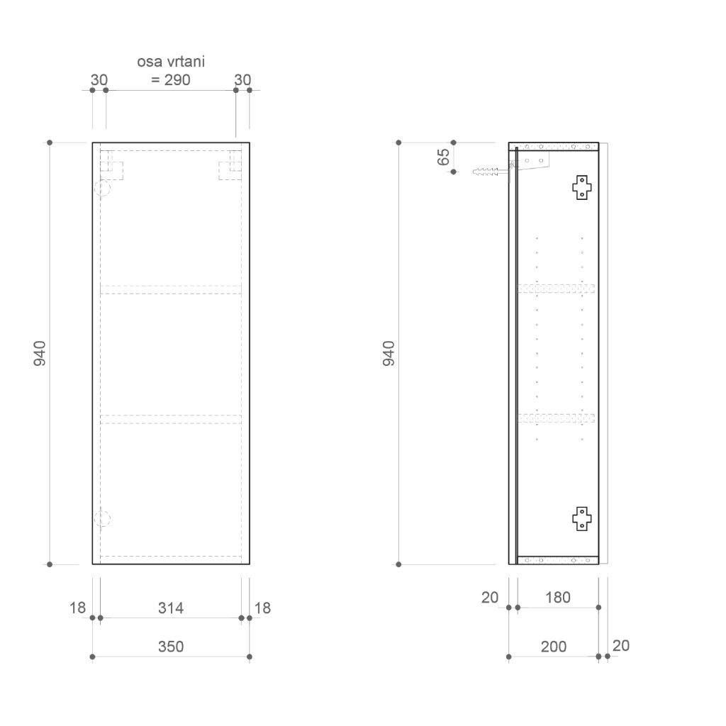 Sapho, dulap ESPACE 35x94x22cm, 1x usa, stanga/dreapta, alb lucios, ESC110-3030
