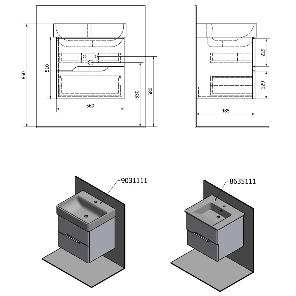 Sapho, dulap lavoar COPPER 57x50,7x48,5cm, alb mat/alb mat, MD060