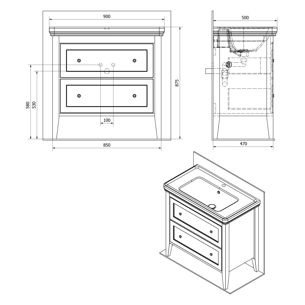 Sapho, dulap lavoar CROSS 85x81x47cm, 2x sertare, alb antic, CR291