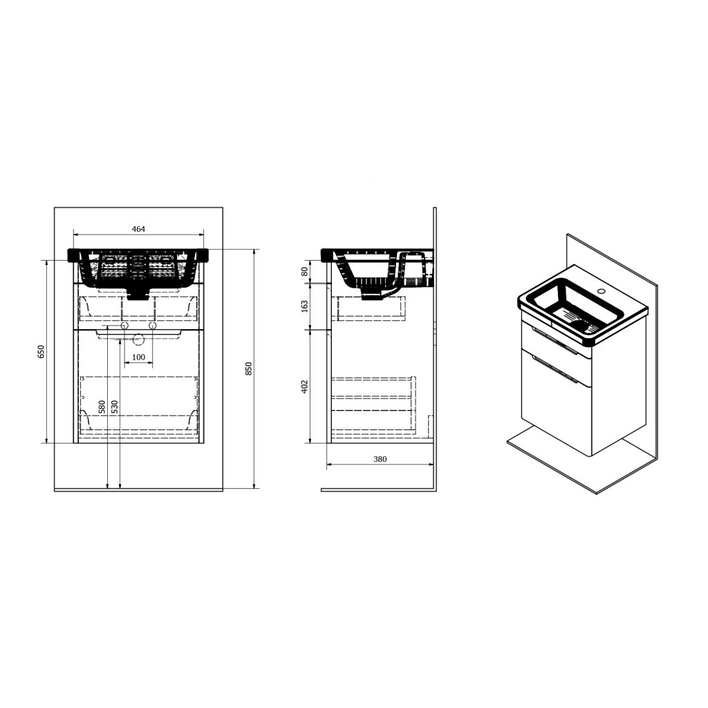 Sapho, dulap lavoar ELLA 46,5x65x38,5cm, 2x sertare, alb (70052), EL052-3030