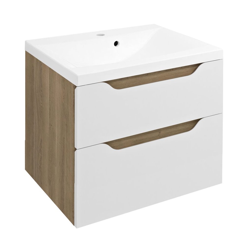 Sapho, Dulap lavoar WAVE 60x65x47.8cm, alb/stejar cuneo, WA060-3025