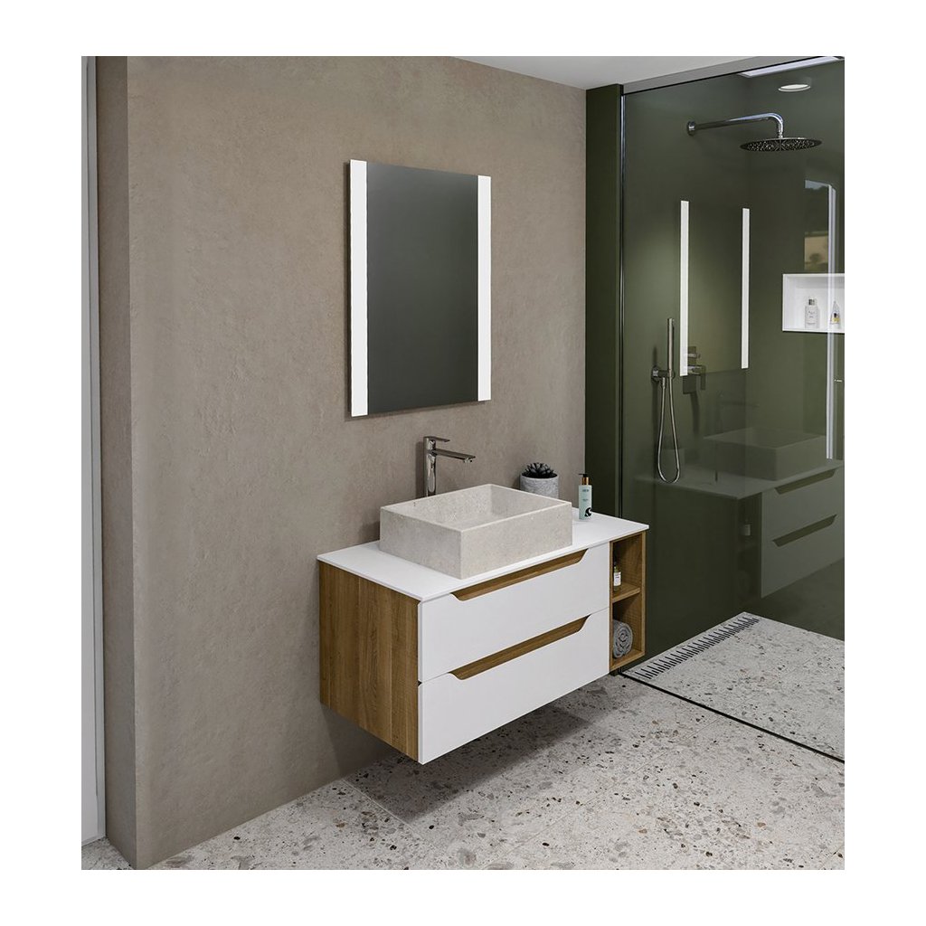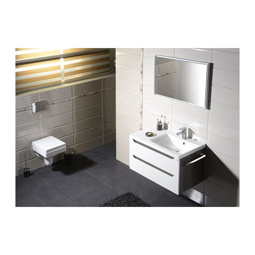 Sapho, Dulap lavoar WAVE 89.7x45x47.8cm, dreapta, alb/stejar cuneo, WA093-3025