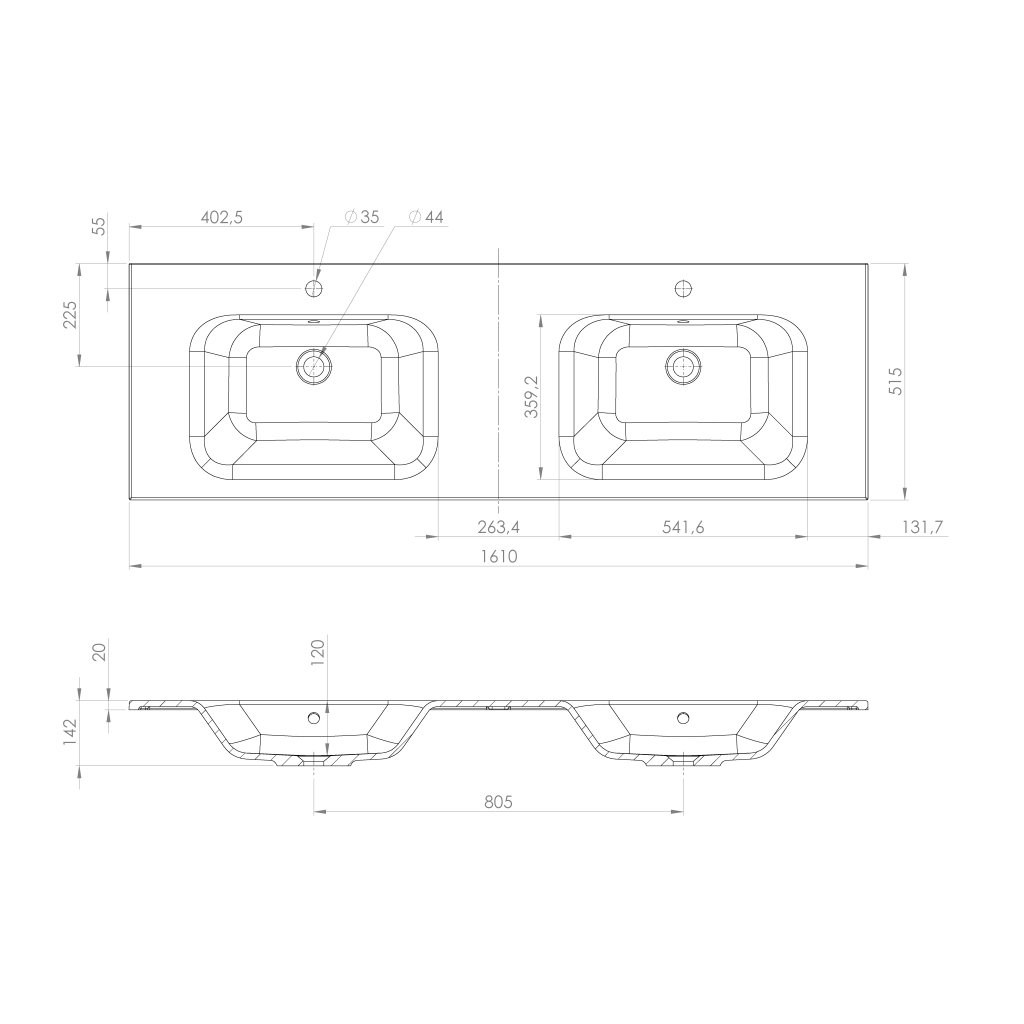 Sapho, dulap LOREA cu chiuveta dubla 161x46x51,5cm (80+80cm), stejar alabama/alb mat, LE080-2231-02