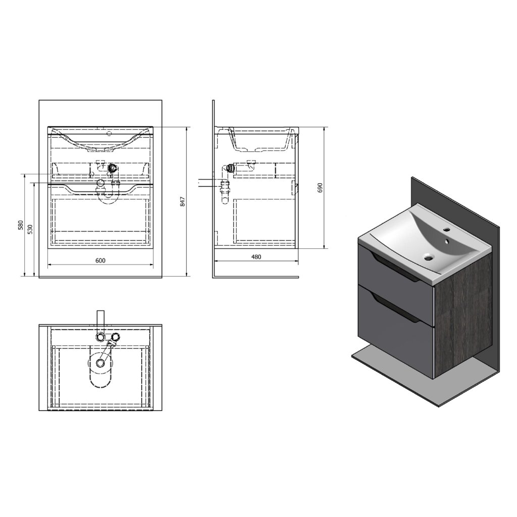 Sapho, dulap pentru lavoar WAVE 60x65x47,8cm, alb, WA060-3030