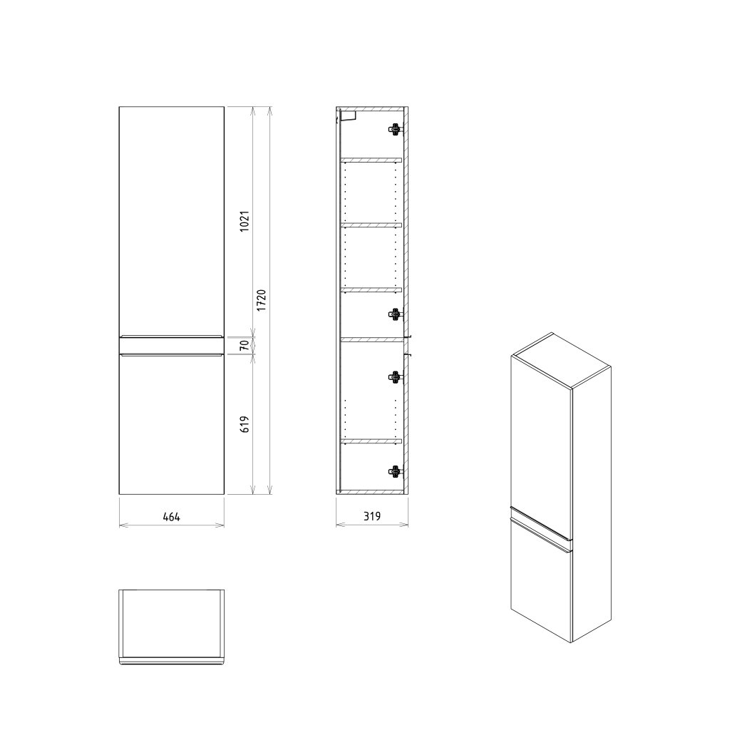 Sapho, dulap SITIA inalt 46,7x172x32cm, 2x usi, stanga/dreapta, pin rustic, SI450-1616