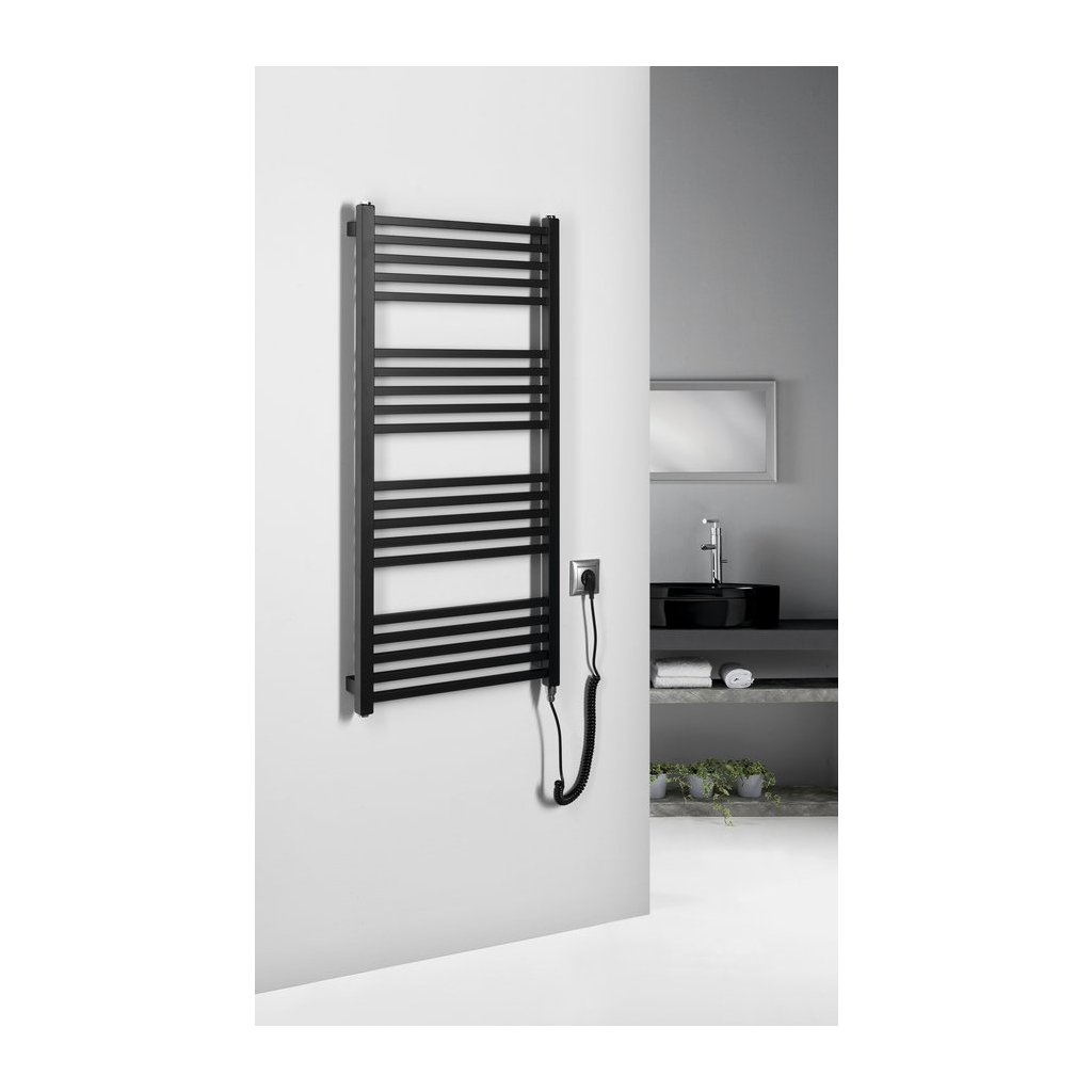 Sapho, element de încălzire electric METRO-E, drept, 500x1060 mm, 400 W, negru mat, ME410B